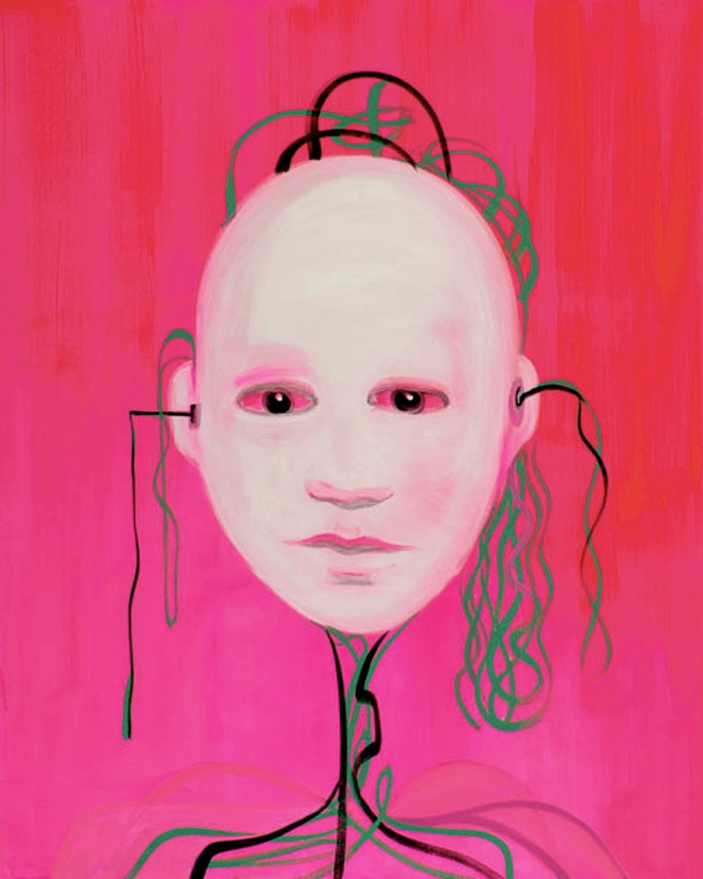 When I first read SHEN Wei’s story, I immediately thought of Wanda Koop’s Face Time series. This provocative body of work depicts human faces connected, not to bodies, but to a tangle of cables. The faces are android-like and genderless, yet they radiate profound emotion, hinting at a deeply human presence.
