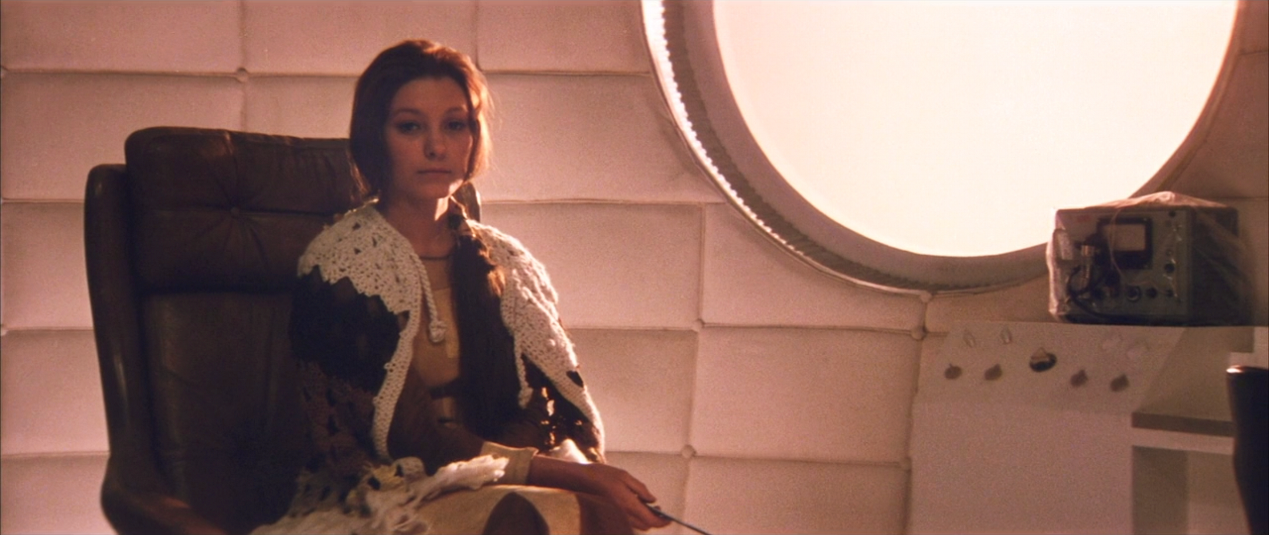 On the human space station orbiting Solaris, circular windows serve as a key visual element. Combined with Tarkovsky’s framing and his admiration for Rembrandt, these windows read almost as a nod to the Dutch master’s Self-Portrait with Two Circles (c. 1665–69). Hari and other so-called “visitors” mysteriously appear within the station—born from the deepest memories, desires, and regrets of the crew, as the ocean constantly scans and responds to the minds of those aboard. These beings are materializations of the suppressed subconscious. Though the station abounds with portholes opening to the infinite, the characters remain turned inward, confronting themselves, their pasts, and the limits of their understanding. The scenario unfolds in the spirit of self-portraiture—an intimate reflection of the self, laid bare and in dialogue with inner experience. In Wanda’s paintings, this meditation reaches its culmination in the symbolic presence of the moon, glowing with luminous centrality at the heart of her vision.